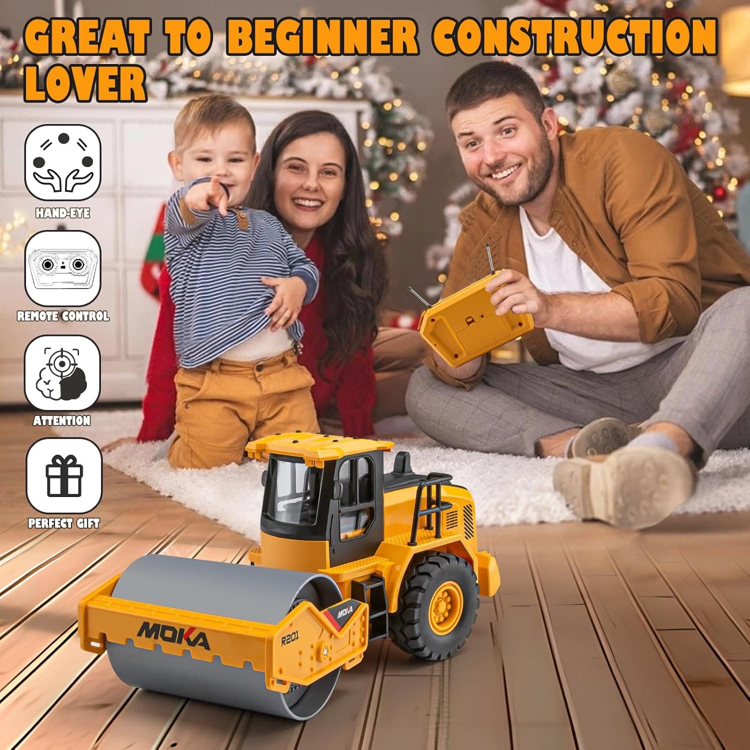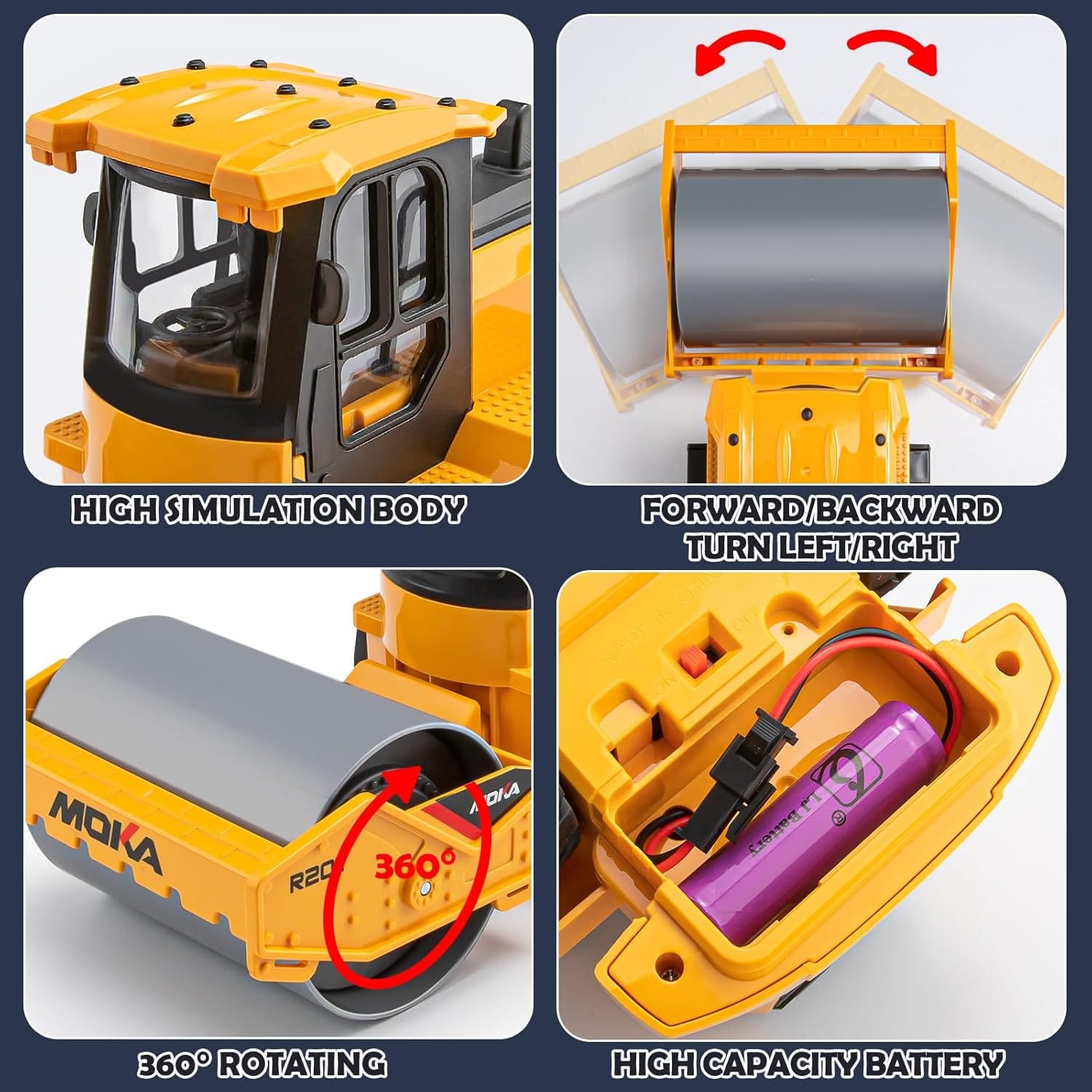 🚜 Realistic Road Roller Design – Detailed 1:20 scale model replicates a real construction roller truck for authentic play.